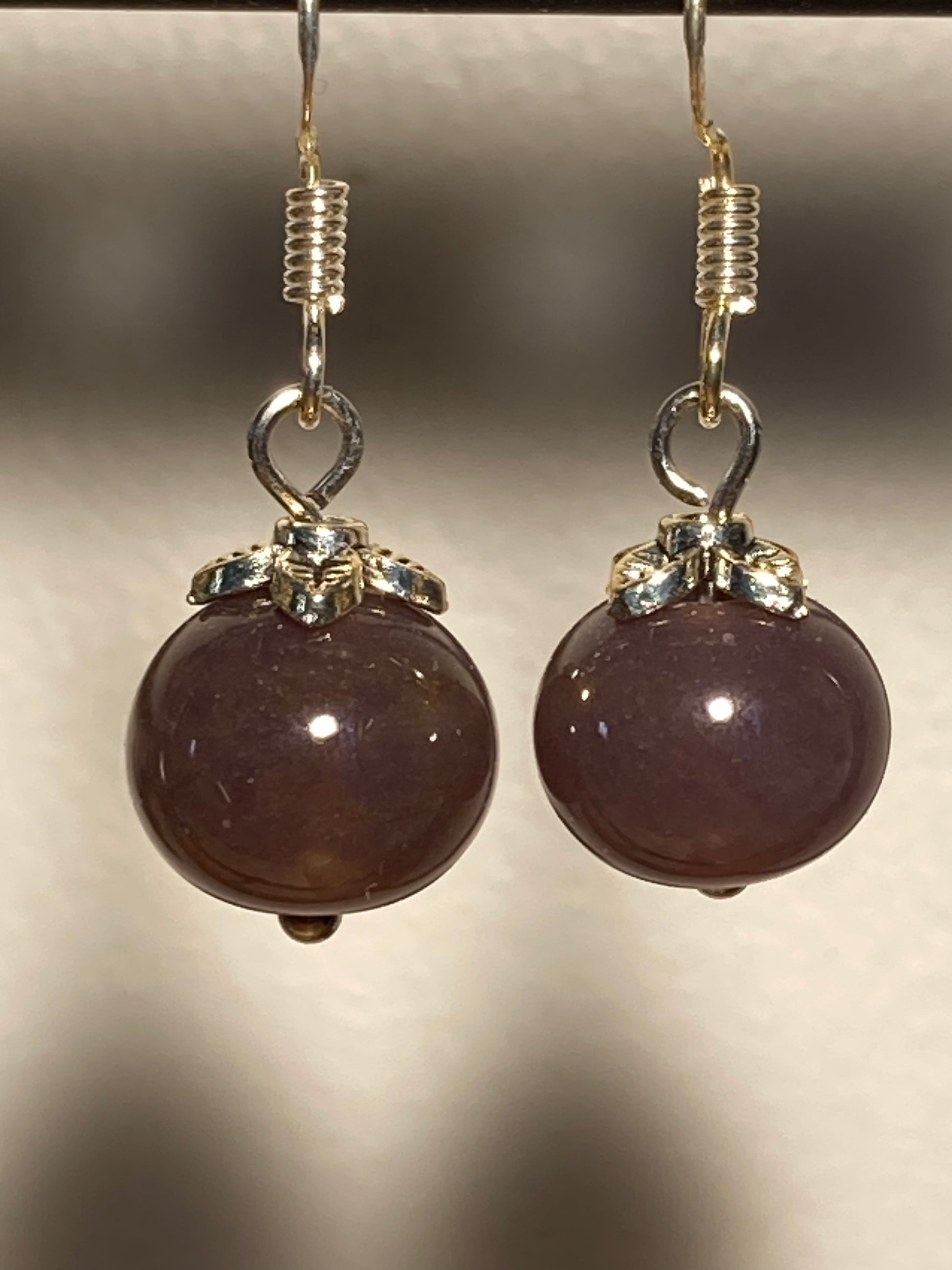 Jolies boucles d'oreilles de couleur brune en perle de verre de murano avec une coupelle en forme de feuille pour un style fruité et pétillant!