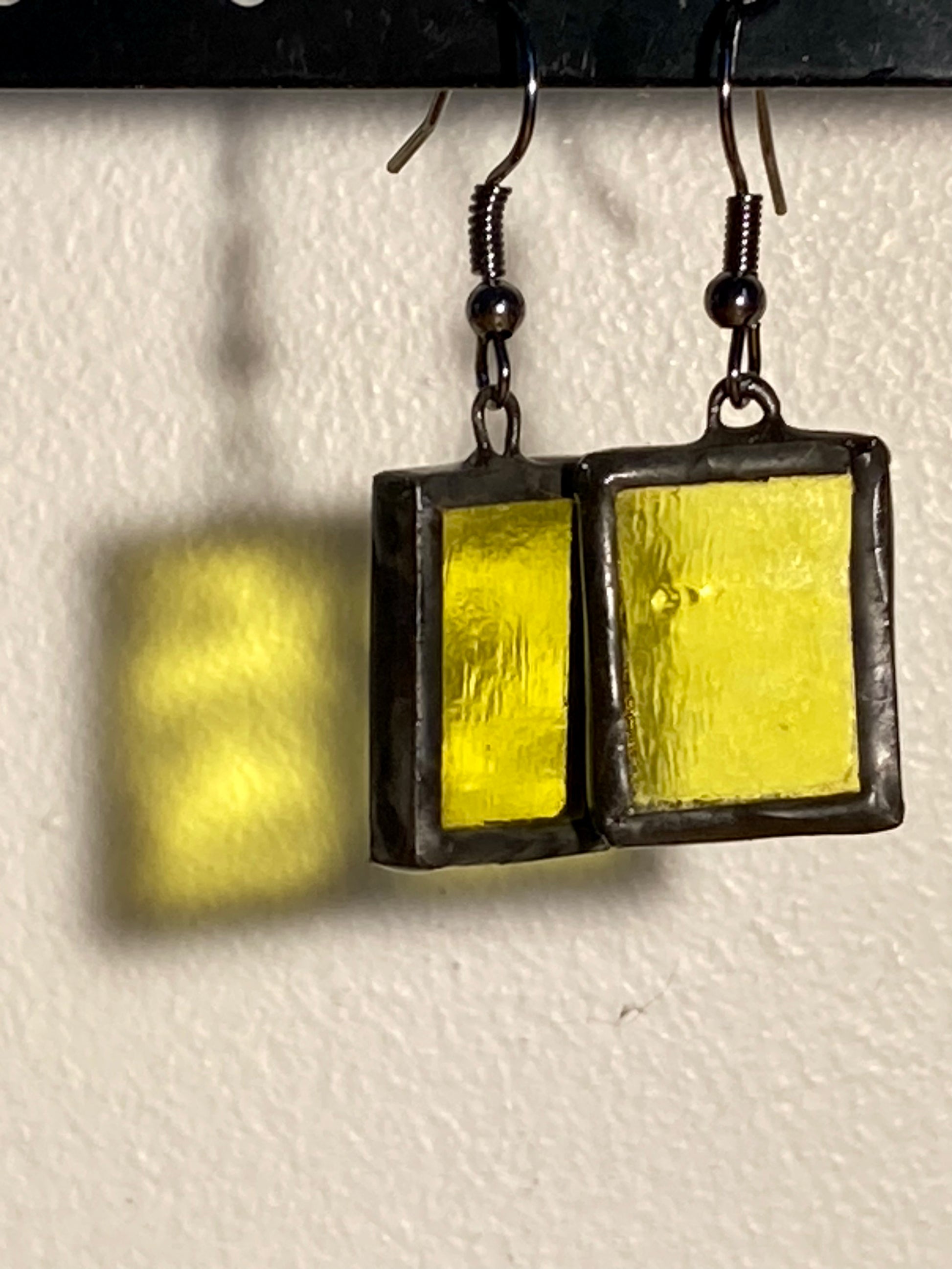Boucles d'oreilles rectangulaires en vitrail jaune