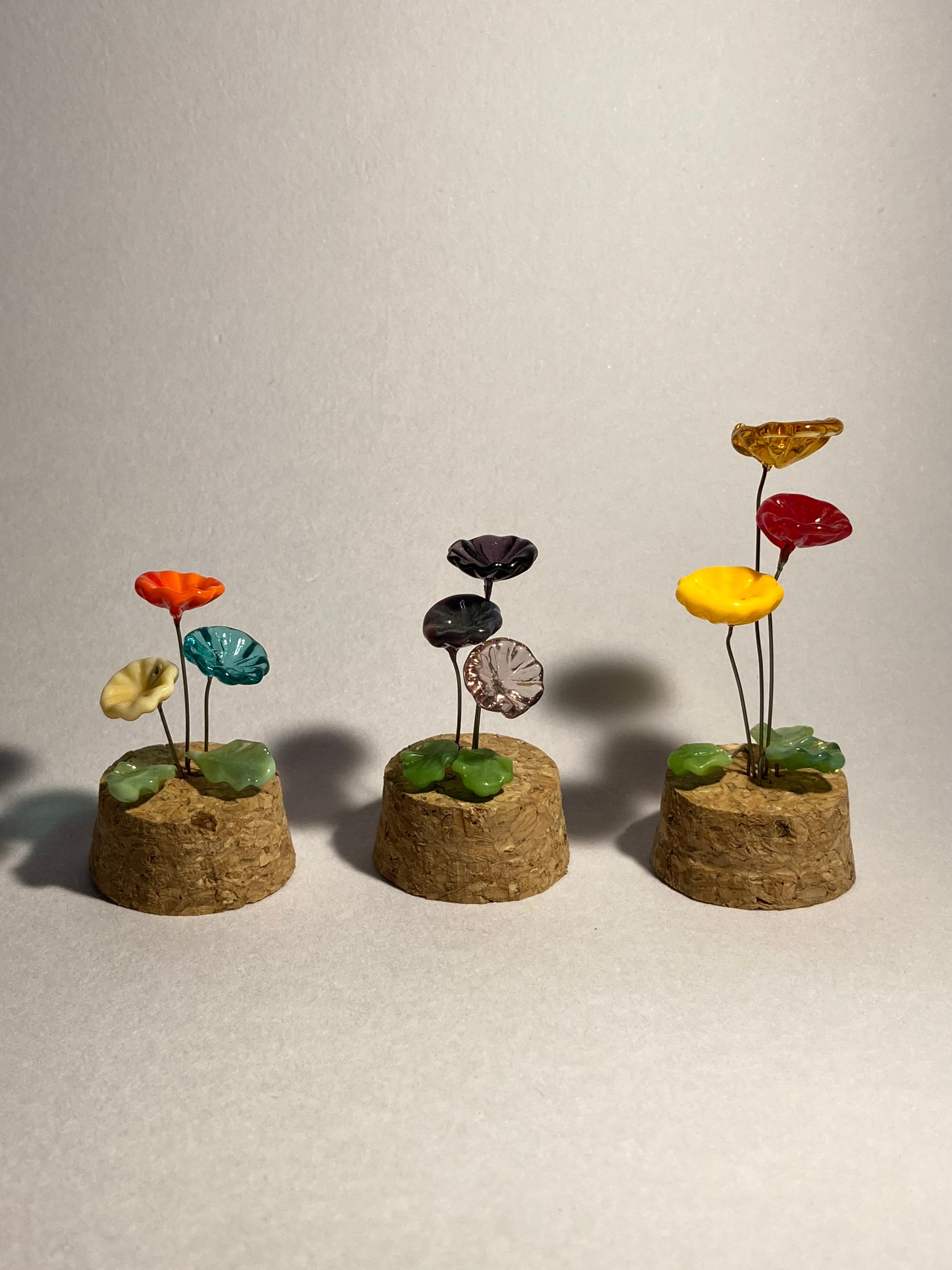 Fleurs et feuillage en verre de Murano filé au chalumeau.
