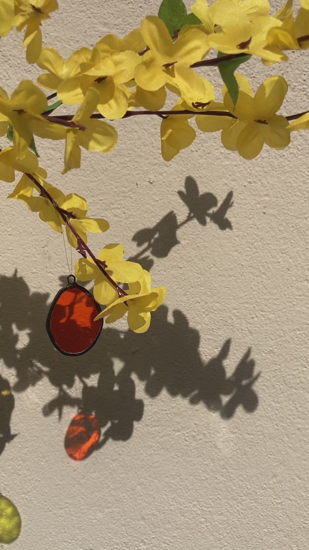 Célébrez Pâques avec cet œuf en verre rouge à suspendre. Fabriqué en vitrail, cet œuf ajoute une touche colorée et élégante à votre intérieur. Parfait pour décorer votre arbre de Pâques et apporter une ambiance festive à votre maison.