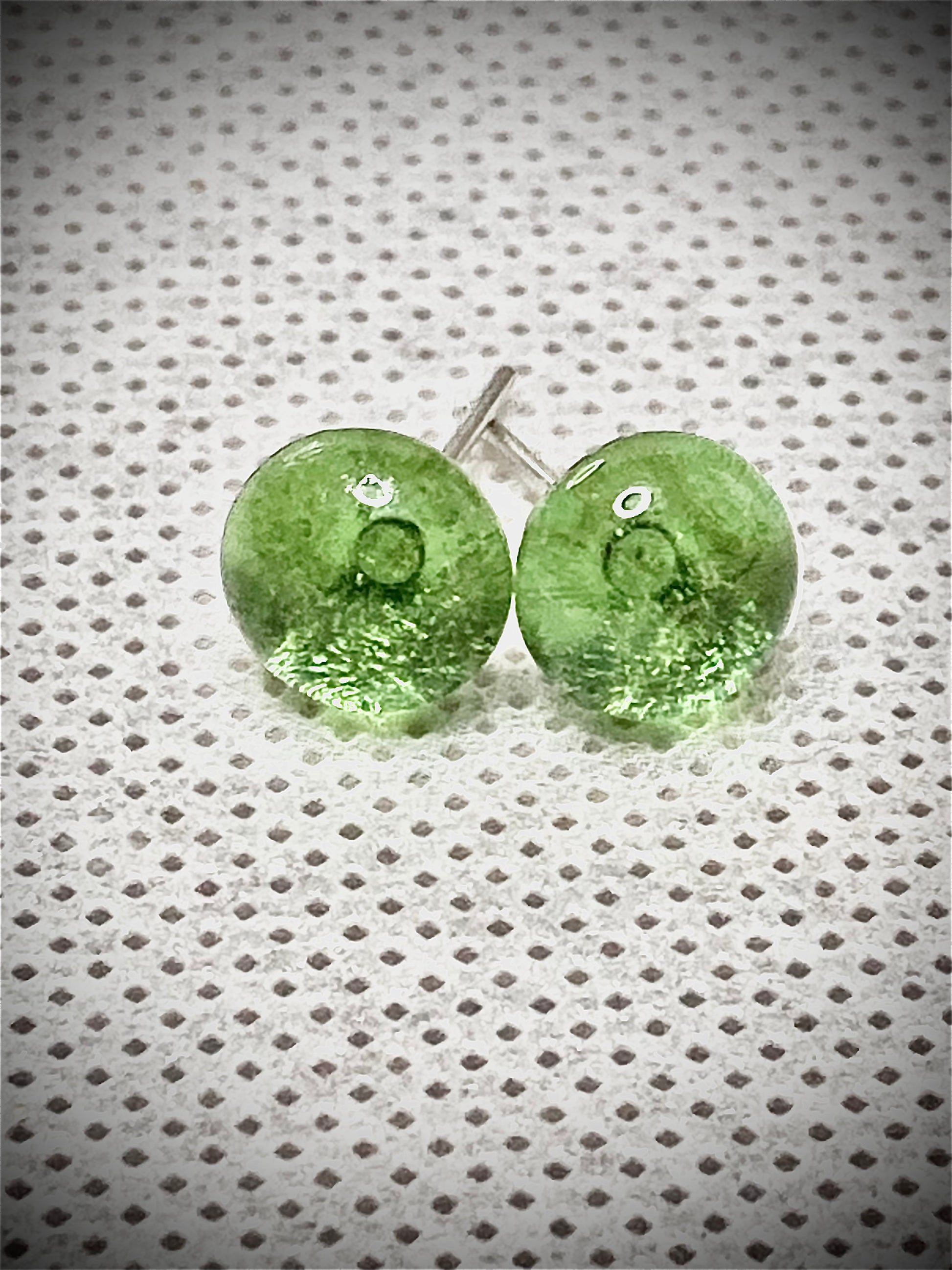 Boucles d'oreilles artisanales en verre de couleur verre d'eau sur tige en inox.