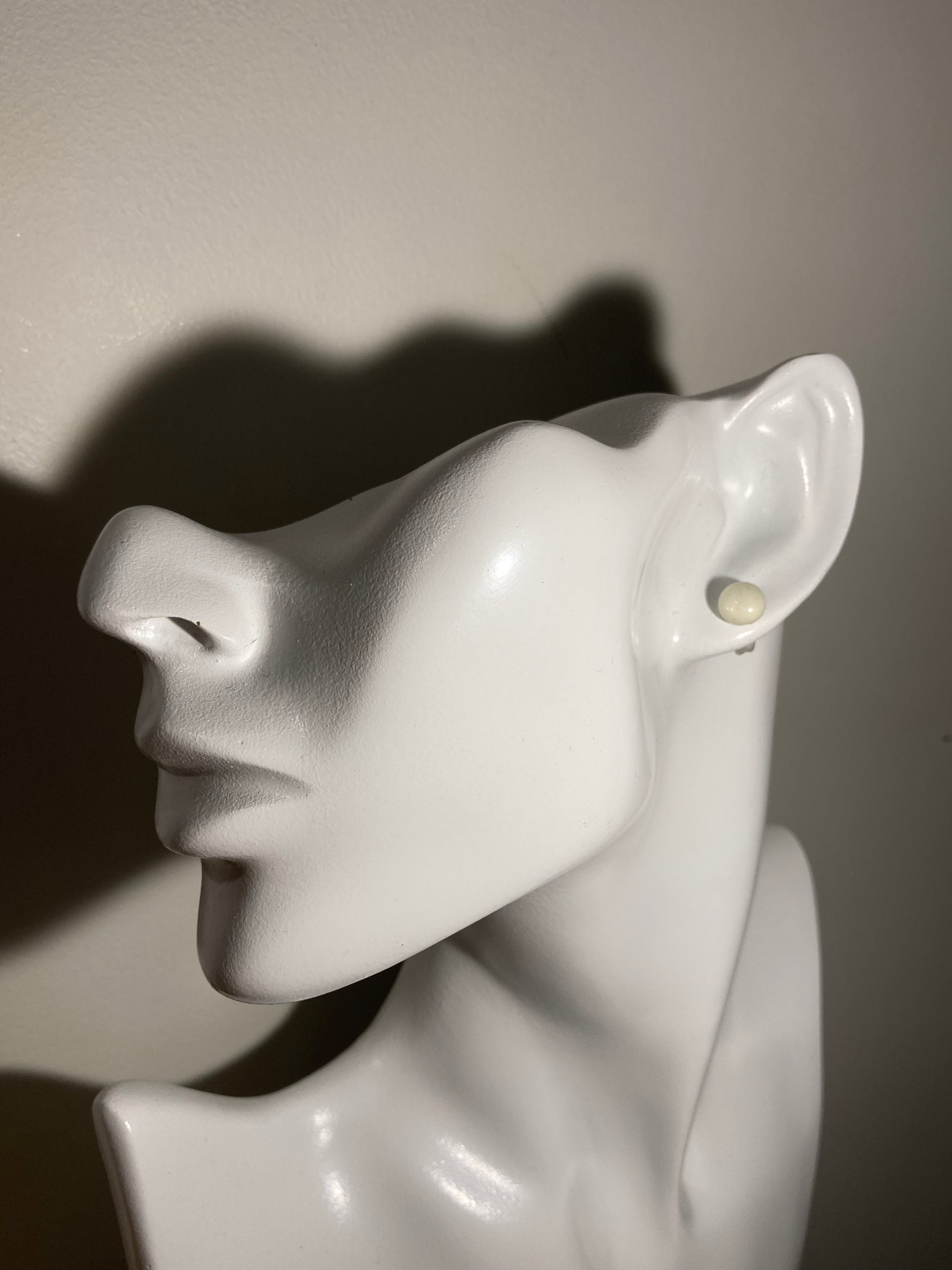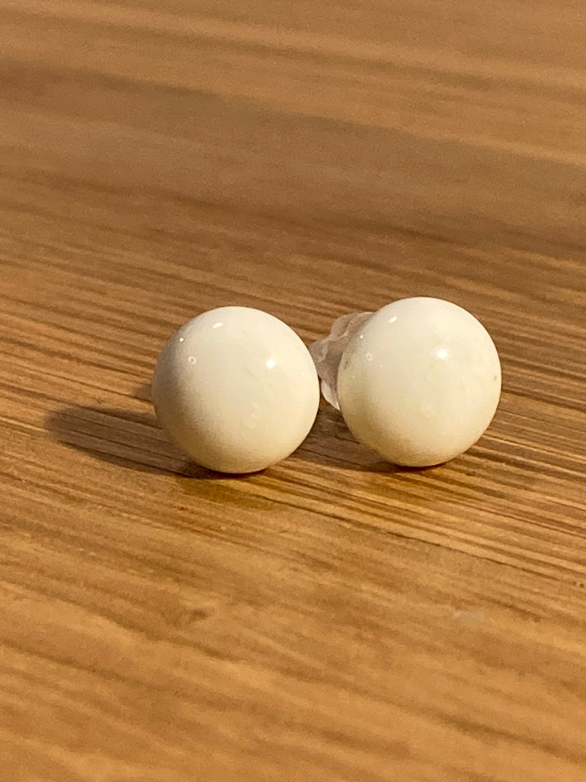 Puces blanches unies en verre de Murano montées sur des tiges en acier inoxydable.
