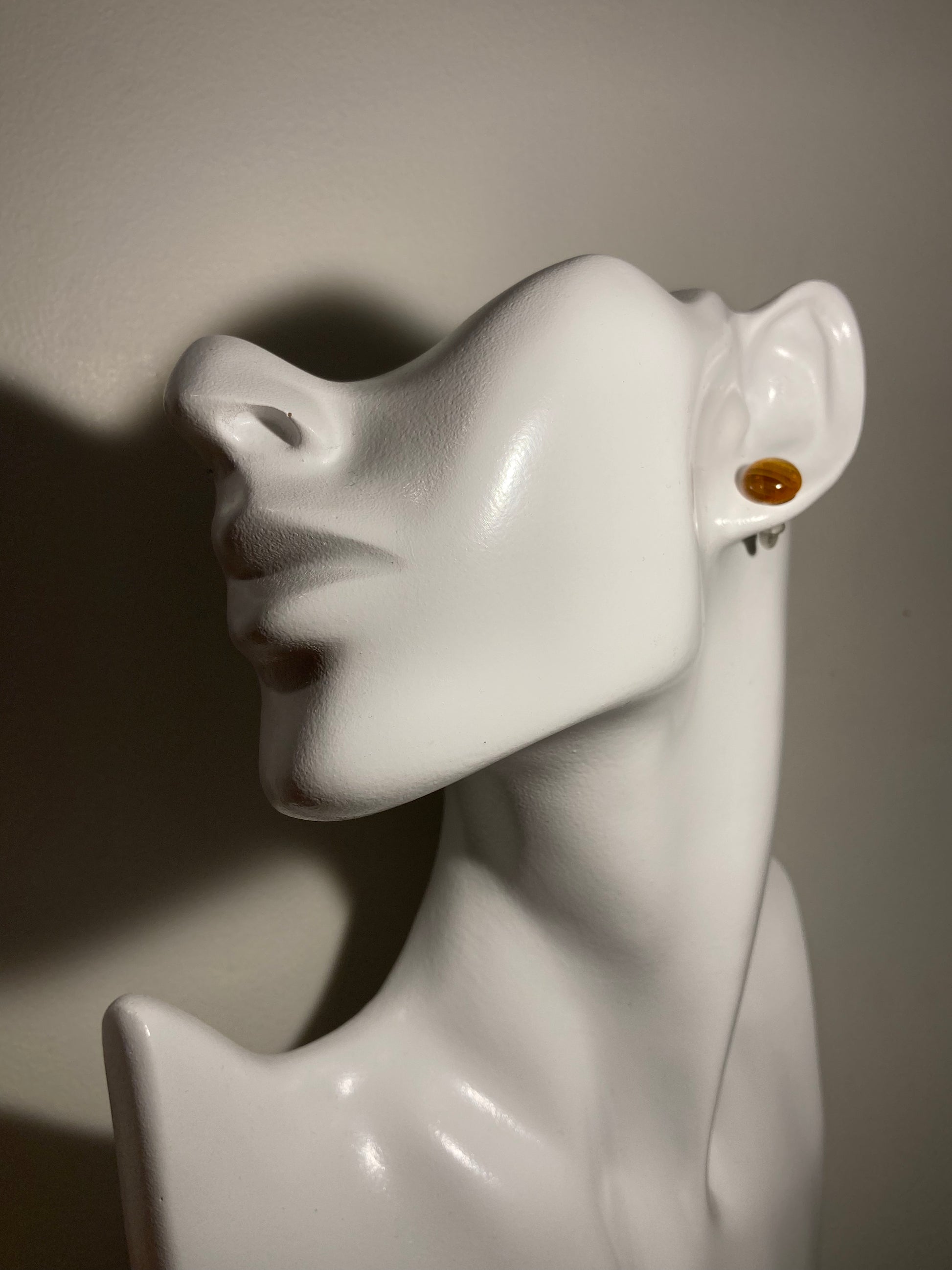 Puces de grande taille en verre translucide de couleur ambre avec de fines lignes blanches