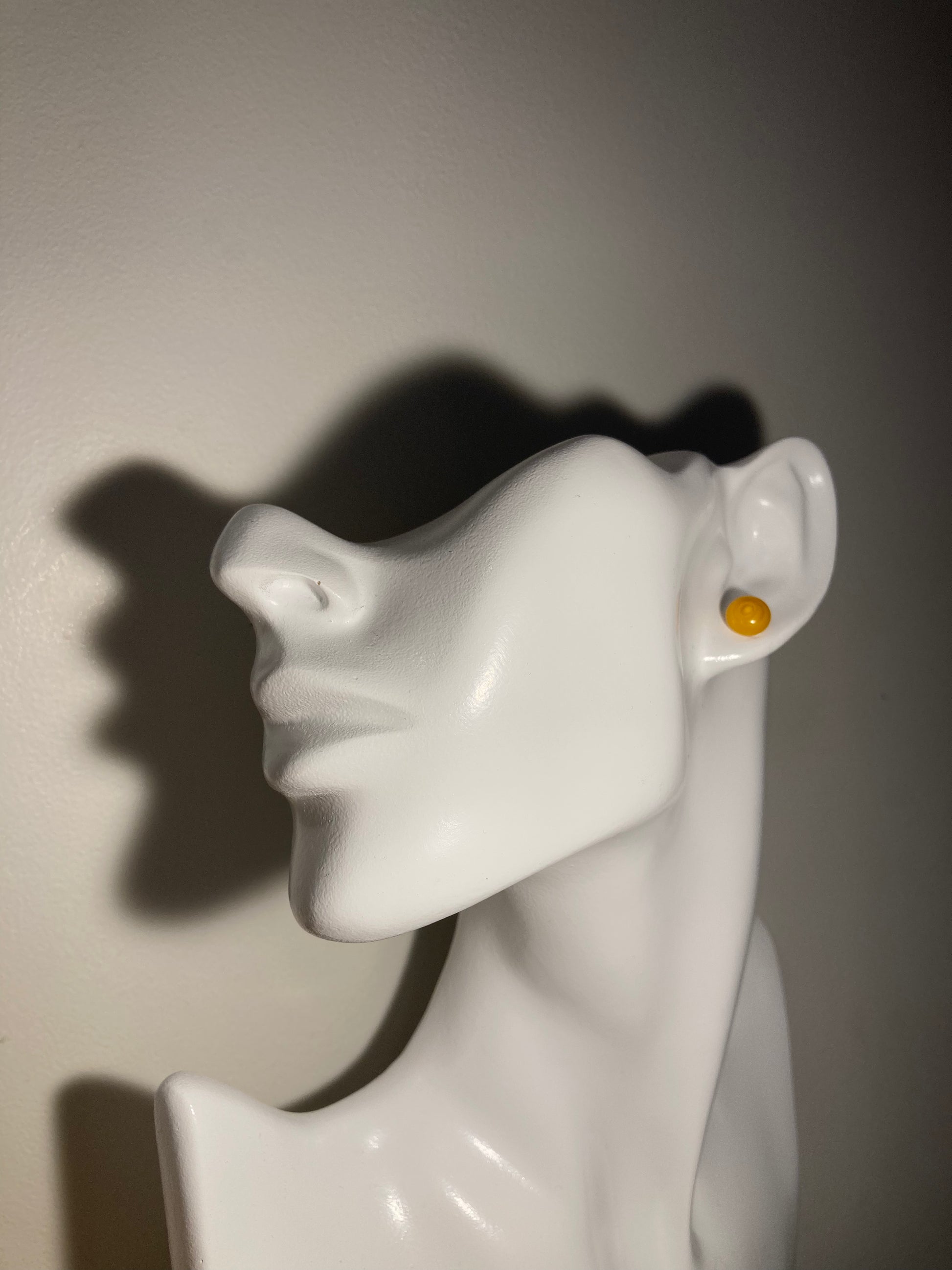Ces puces oranges en verre de Murano ont des cercles concentriques irréguliers foncés.