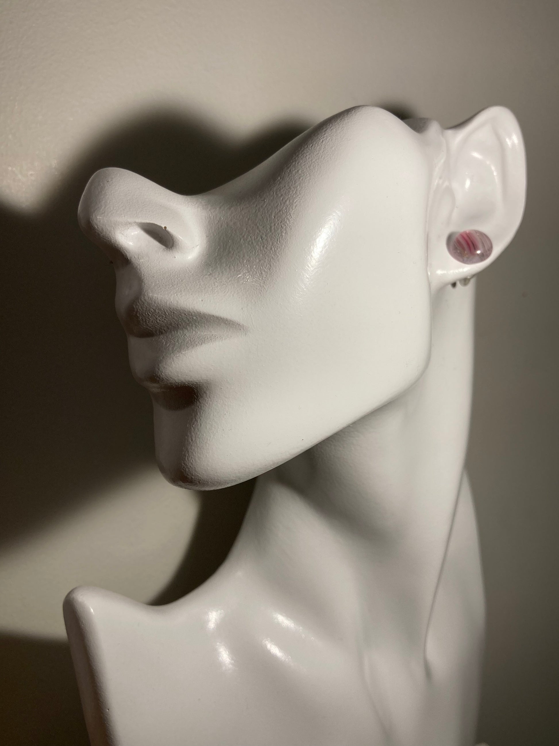 Ces puces transparentes rayées de rose sont conçues à partir de vitraux.