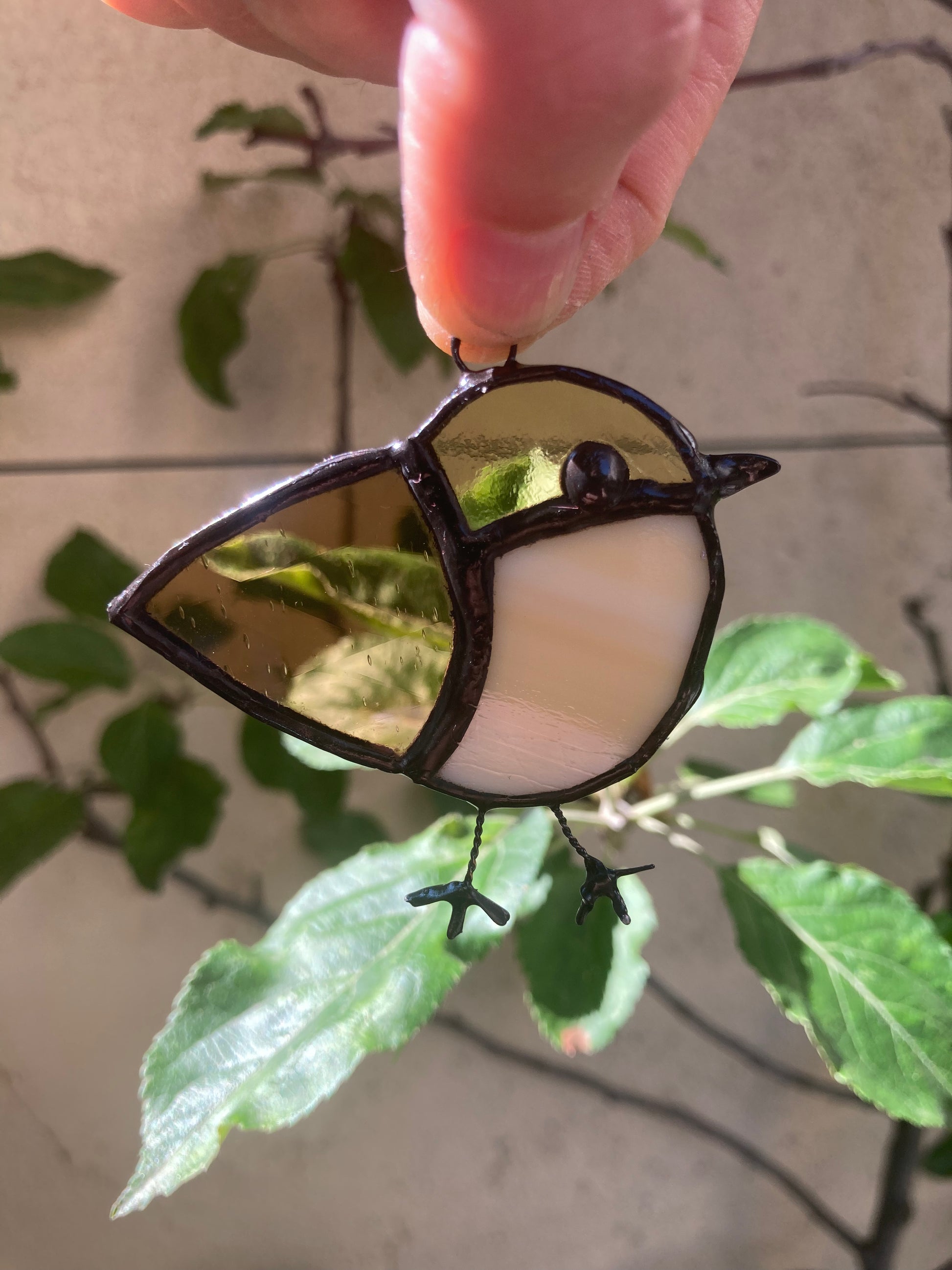 Suspension oiseau marron et jaune en vitrail